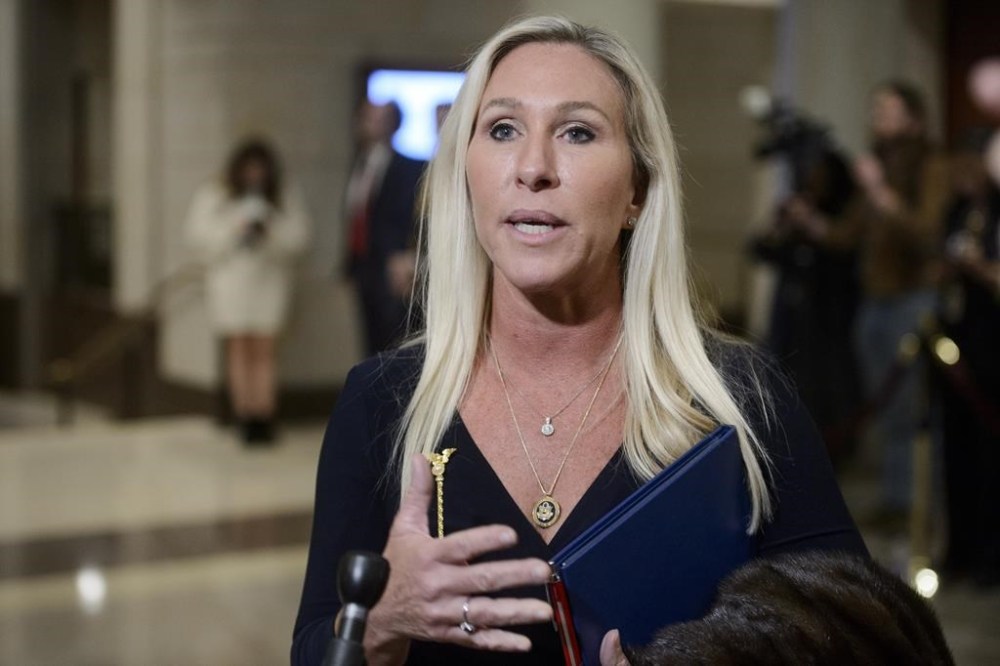 FILE - Rep. Marjorie Taylor-Greene, R-Ga., talks to reporters at the Capitol, Dec. 5, 2024, in Washington. (AP Photo/Rod Lamkey, Jr., File)