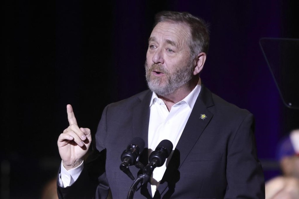 FILE - Ohio attorney general Dave Yost speaks during a rally for Republican vice presidential candidate Sen. JD Vance, R-Ohio, in Middletown, Ohio, July 22, 2024. (AP Photo/Paul Vernon, File)