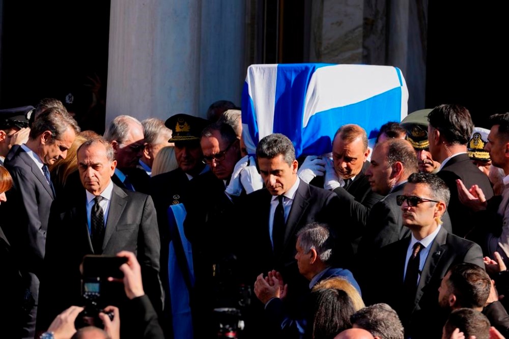 “He set the bar high and boldly for a strong, equal Greece in Europe,” Greek President Katerina Sakellaropoulou said in her eulogy. “The accession to the eurozone and the accession of Cyprus to the European Union were brilliant achievements.”