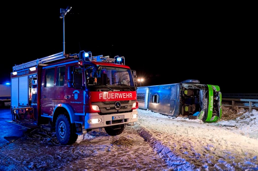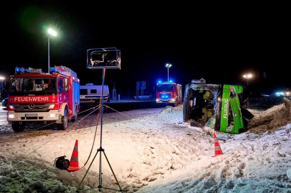 A bus accident on a highway in northeastern Germany leaves 2 dead