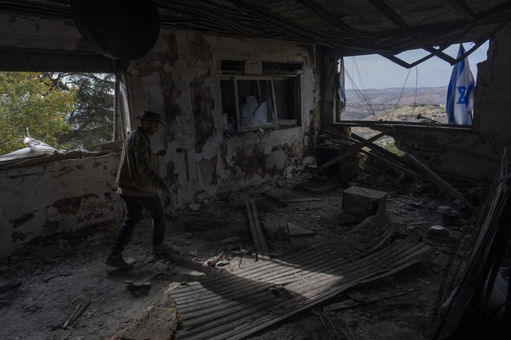All homes on the ridge facing Lebanon are destroyed, with gaping holes left by missile strikes or fires that burned so hot that cars partly melted. Because the kibbutz is so exposed, 70 meters (yards) from the border in some places, firefighters sometimes couldn’t respond to the blazes. Instead, the emergency squad was forced to watch on security cameras as fires burned.