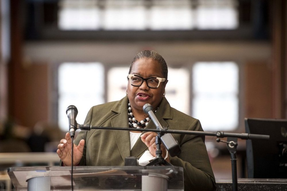 FILE - Wayne County Prosecutor Kym Worthy speaks during a news conference at Farwell Recreation Center in Detroit, Monday, Aug. 16, 2021. (Nic Antaya/Detroit News via AP, File)
