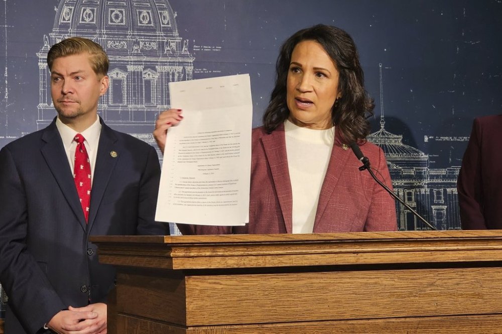 All 66 Democrats had boycotted the House since Jan. 14 to prevent a quorum of 68 members needed for the chamber to operate. All but one Democrat and all 67 Republicans were present on the House floor when Secretary of State Steve Simon took the roll, before handing the speaker’s gavel to Demuth. Representatives on both sides of the aisle gave her a standing ovation.