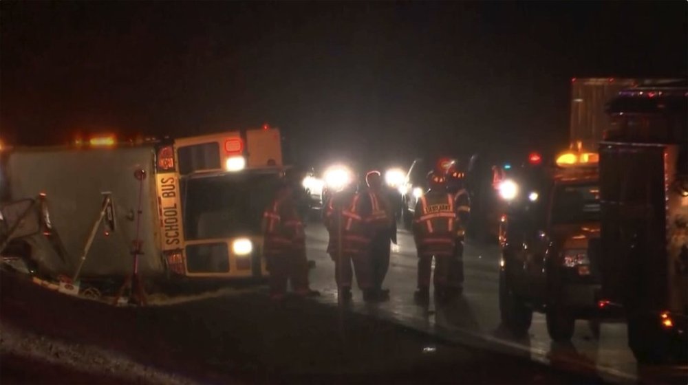 Montvale Mayor Mike Ghassali said in a social media post that no deaths were reported, but there was one serious injury — a 14-year-old boy who was pinned under the overturned bus. Ghassali said the bus was headed to New York state. The borough of Montvale borders New York state.