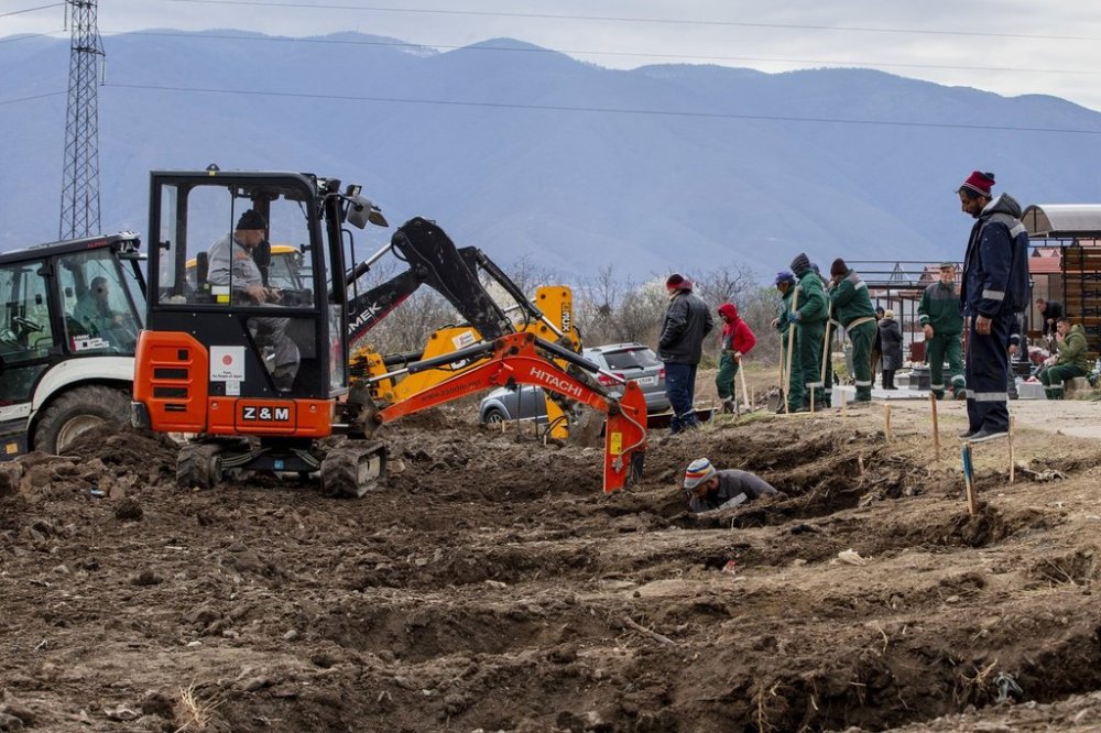 Crews used excavators to dig rows of graves in Kocani as the town awaits the burial of young residents whose remains are still being processed for identification.