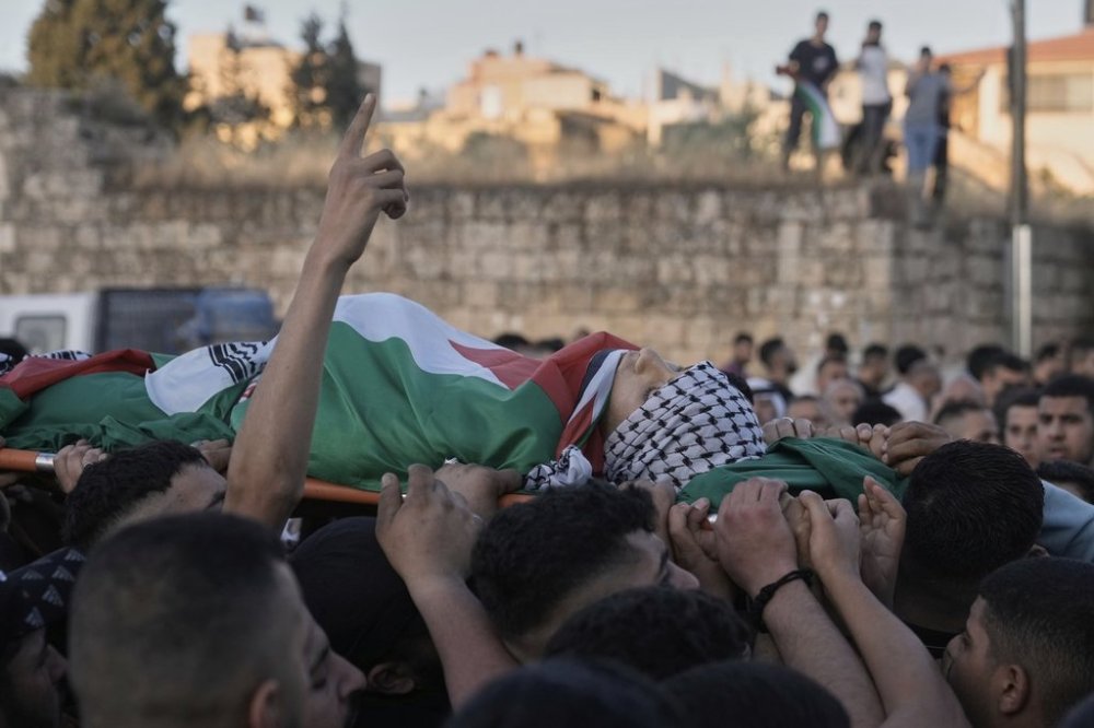 Palestinians carry the body of Abdul Khaleq Jbour, 16, who was killed in an Israeli military raid, during his funeral at the West Bank village of Salem, near Nablus, Friday, April 25, 2025. (AP Photo/Majdi Mohammed)