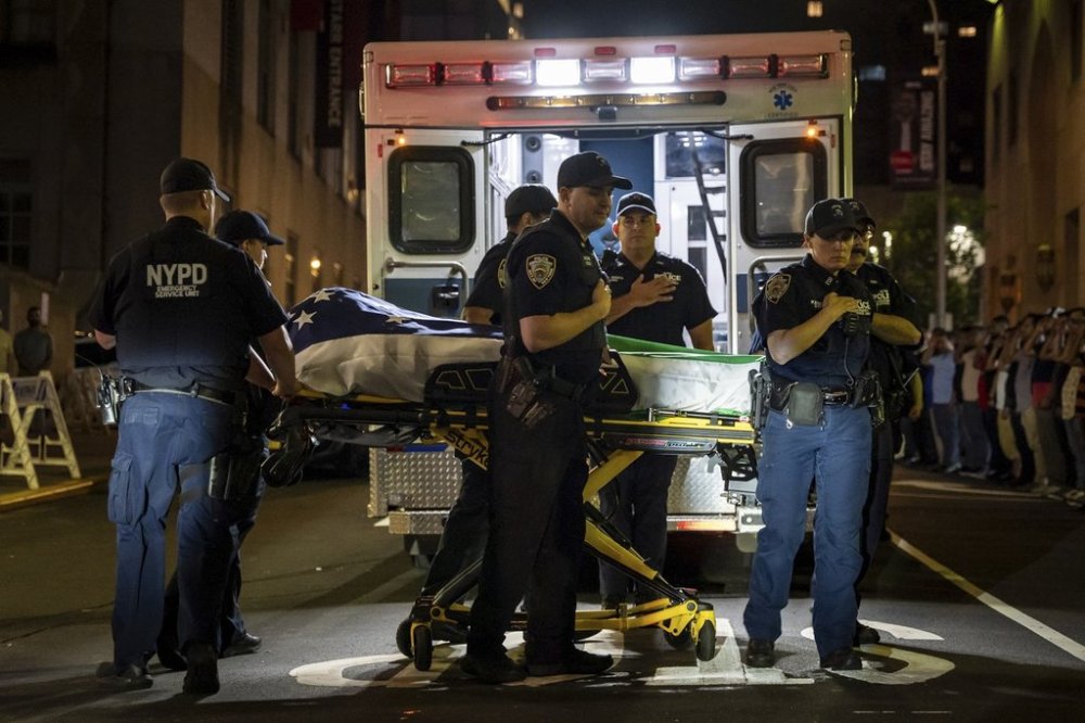 She and members of the force also paid tribute to Officer Didarul Islam, who was guarding the building on a paid security job when he was killed. His flag-draped remains arrived late Tuesday afternoon at the Bronx mosque preparing for his funeral.