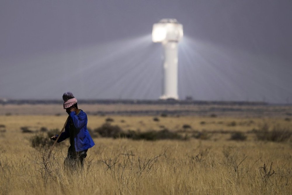 UPINGTON, South Africa (AP) — Deep in South Africa’s Northern Cape province, south of the Kalahari Desert, a beaming light towers above dozens of solar mirror panels.