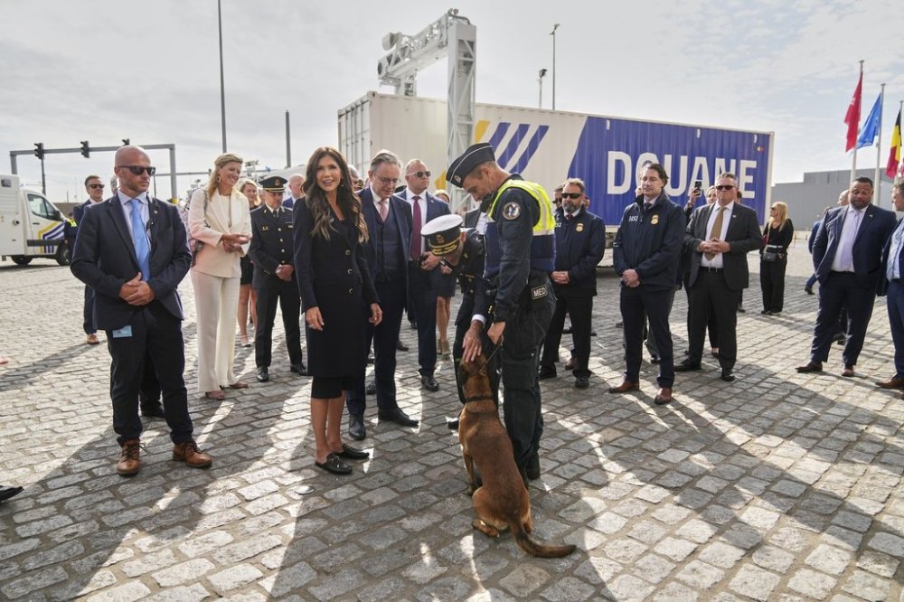 Noem said during a joint appearance in Antwerp that various U.S. agencies were cooperating with Belgium to increase the sharing of data and intelligence to combat drug trafficking. “Our threats will be stopped through collaboration, through sharing of information and intelligence,” she said, adding that ports are “a prime target for foreign terrorist organizations, or cartels, or transnational criminal organizations that smuggle drugs and smuggle traffic through them. And here in Antwerp, you know that all too well.”